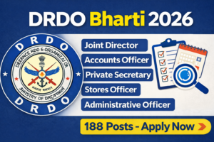 DRDO has released the official notification for Joint Director, Sr. Accounts Officer, Administrative Officer, Stores Officer, Accounts Officer, Private Secretary in 2026. There are a total of 188 vacancies available. Interested candidates can apply online through official www.drdo.gov.in website as per the guidelines. Always check the official www.drdo.gov.in website for updates. For more details about DRDO Recruitment 2026 Details, DRDO DRDO Application 2026, DRDO Job 2026, DRDO Vacancy 2026, DRDO Bharti 2026, visit our website https://maharashtrajobsalert.in/